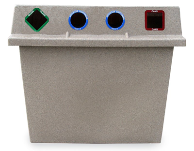 The Super Sorter Four-In-One is ideal for pedestrian concentrated areas including parks, city centers, and shopping malls. It is built to be durable, long-lasting and easy to empty. With its security features, attractive design and flexibility in indoor/outdoor applications; they are an excellent solution for centralized recycling and waste collection. The Four-in-One also has optional signage frames to generate advertising revenue, ground mounting kits, and locking options.
