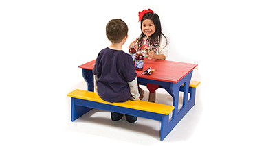 Seats 6 children easily at age appropriate heights of 16 inches (Toddler) or 20 inches (Preschool) or 24 inches (Elementary). Made from heavy-duty 100% recycled plastic (RSP) and stainless steel hardware. Will last a LONG time! Can be cleaned with strong cleaners with no effect on color or texture of the table. 16", 20", and 24" heights available 36" L or 48"L. All are 34" W (including seats). Also available as ADA Accessible Table (extended Table Top on one end) for Elementary size only - 24"H.